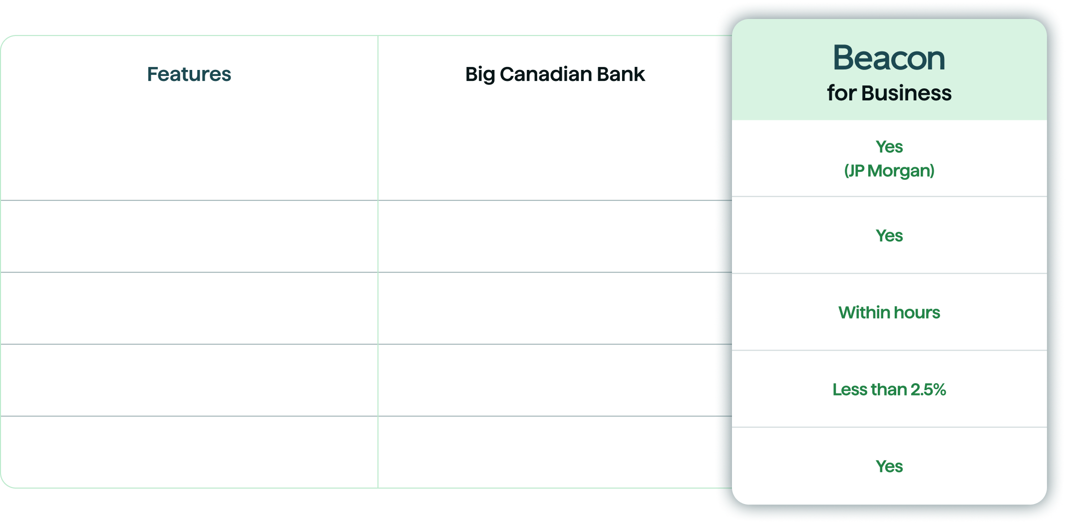 Compare the real cost of business payments. We’re fully transparent — and you’ll see why Beacon wins.
